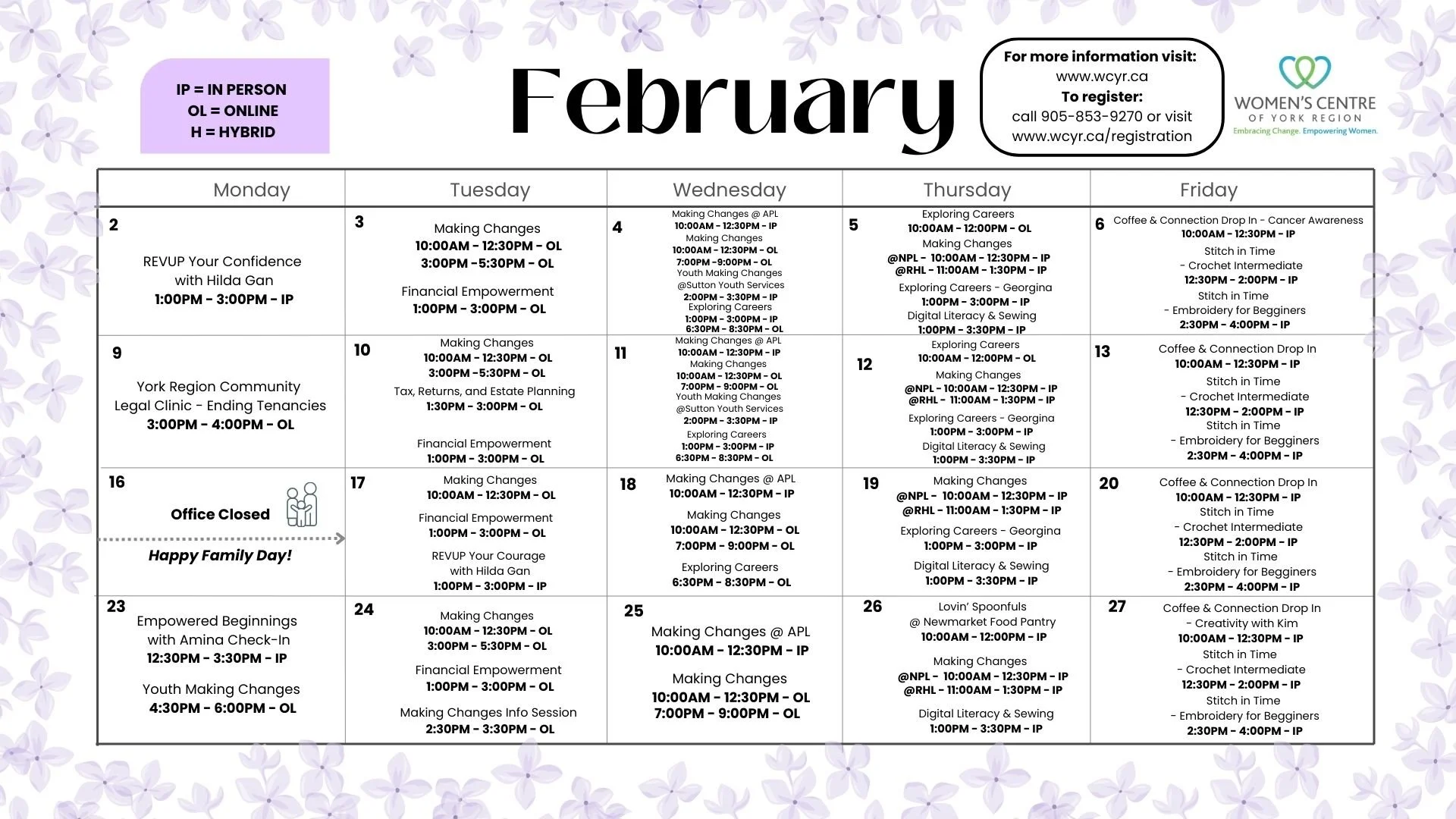 | Empowered Beginnings Check-In | Monday February 23rd | 12:30pm-3:30pm | In person Women's Centre of York Region |